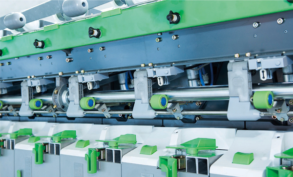 整臺機器最多620個(gè)紡紗單元均可實(shí)現最高引紗速度200米/分。